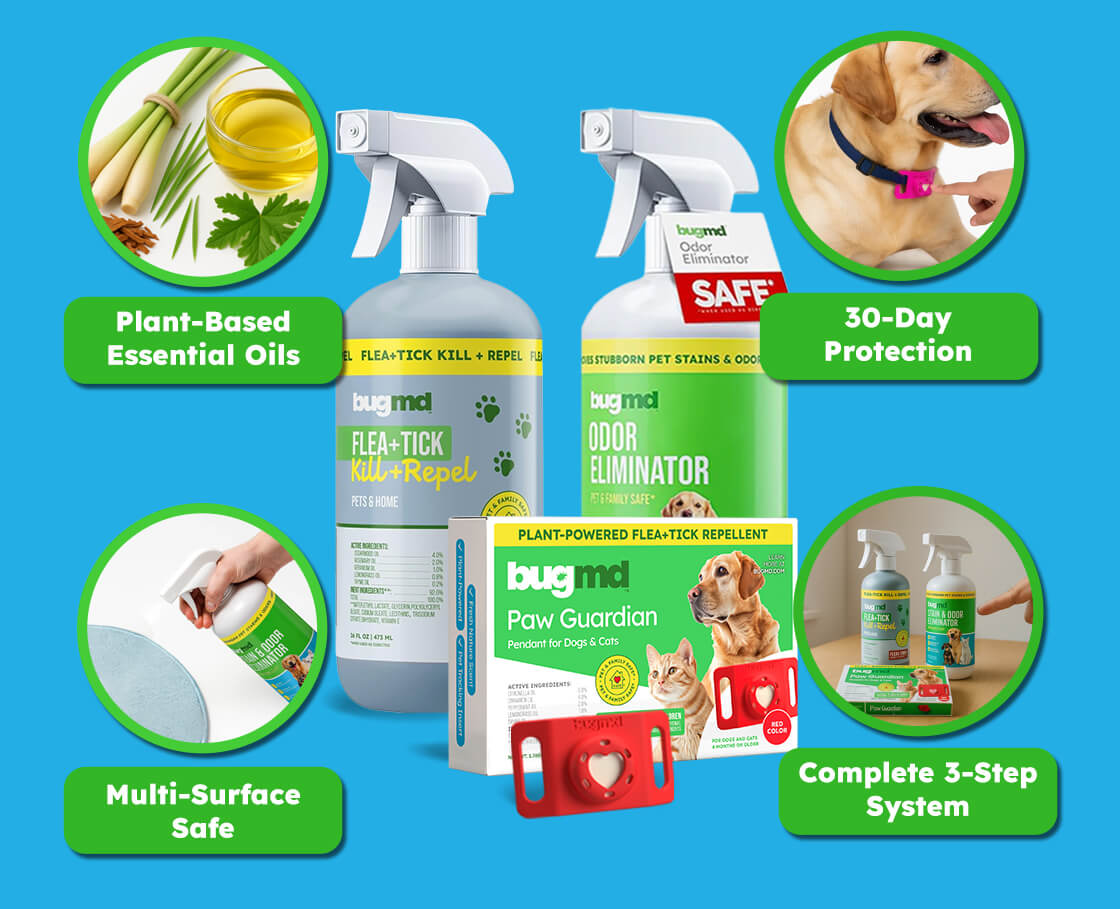 BugMD created the perfect Flea Freedom System that works WITH your pet instead of stressing them out. The combination of elimination, prevention, and cleanup using essential oils is what finally breaks that annoying cycle where fleas just keep coming back.