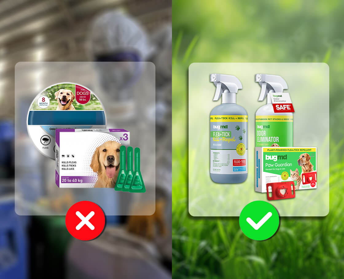 While competitors make basic drops and collars that only affect what's already on your pet, we created a complete system that prevents, eliminates, AND cleans up. Our approach gives you comprehensive pest control plus a home cleanup that single-method treatments simply can't provide.
